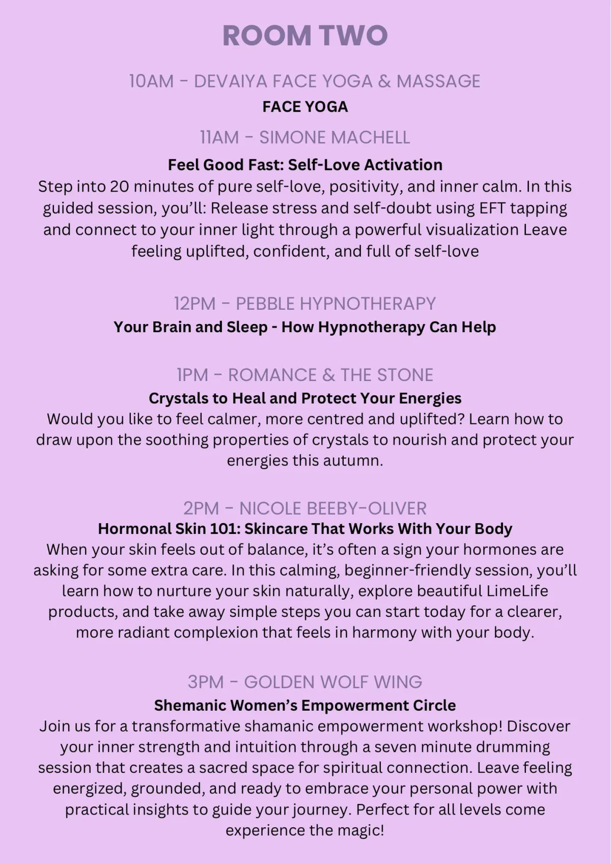 Our events attract individuals who are passionate about wellness, spirituality, self-development, and living more consciously. Attendees are typically women aged 30–60, though we welcome all, and they’re actively seeking services, products, and experiences that enhance their wellbeing.